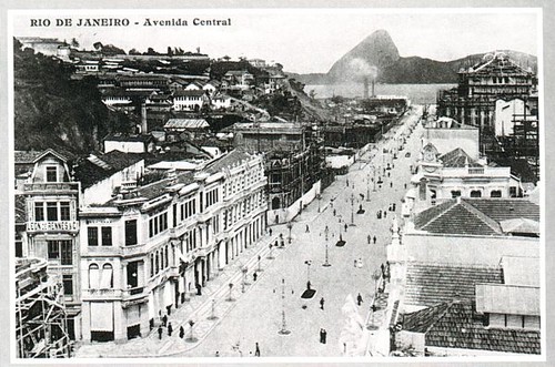 1. Av Central com o morro do Castelo, demolido(E) hoje Av. Rio Branco, Foto: rzeusnet-ventonolitoral.blogspot.com