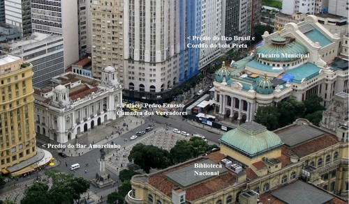 1. Centro Histórico - Theatro Municipal do Rio na Cinelândia com o Museu Nacional de Belas Artes e Av Rio Branco(D) Av Treze de Maio(E) - Foto: Augusto Malta